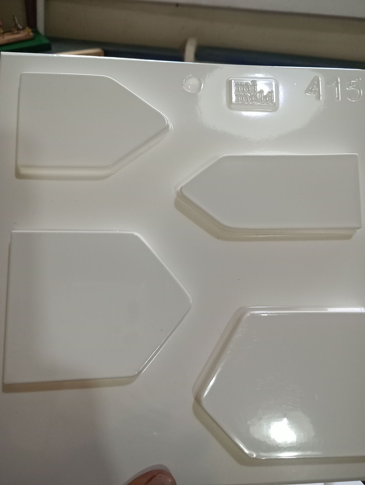 Molde termoformado modelo 415, liviano y flexible, con diseño de casitas navideñas en placa. Ideal para crear figuras decorativas en cemento blanco, resina acrílica, yeso o pasta piedra. Perfecto para combinar con bases como los modelos 1, 2 y 3 y armar escenas de Belén, pueblos navideños o decoraciones temáticas. Fácil desmolde y buena definición.