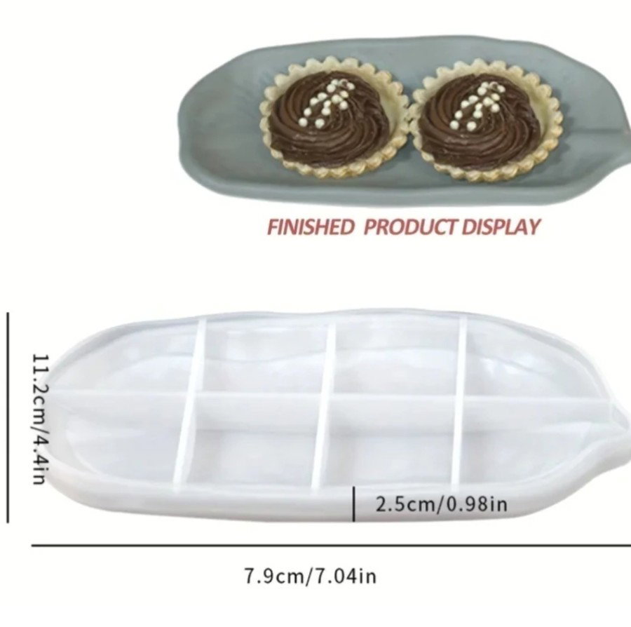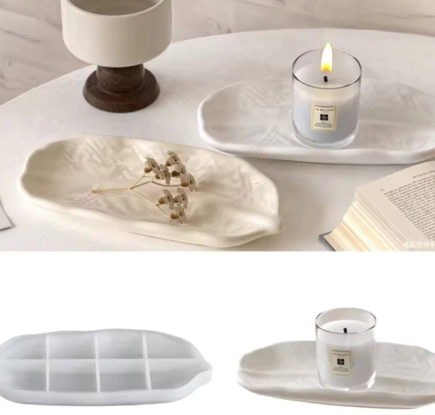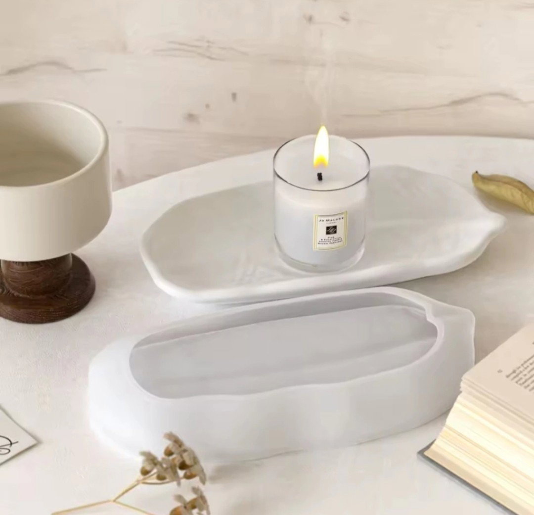 Molde de silicona flexible con forma de bandeja ovalada en tamaño grande. Apto para cemento blanco o gris, yeso y resinas acrílicas, epoxi o poliéster. Su forma alargada es ideal para crear bandejas decorativas, bases para velas, organizadores o centros de mesa.