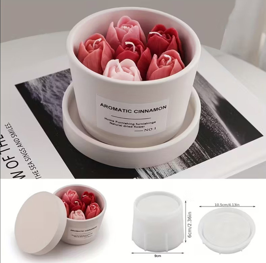 Molde de silicona maceta contenedor con plato base o tapa XL – Velas, Cemento, Resina y Yeso
