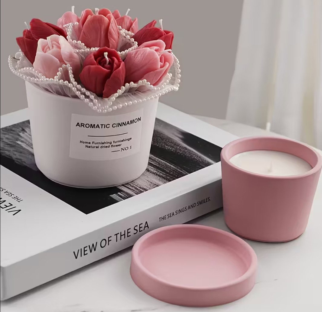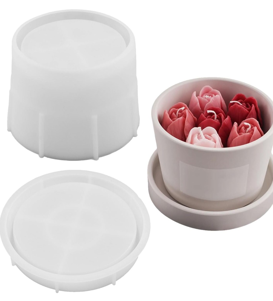 Molde de silicona maceta contenedor con plato base o tapa chico – Velas, Cemento, Resina y Yeso
