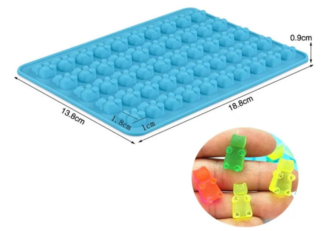 Molde de silicona flexible con formitas mini ositos tipo gomitas ideal para velas decorativas o piezas modernas en cemento, yeso o resina. Su forma es perfecta para lograr un estilo minimalista. Apto para resina acrílica, epoxi o poliéster y cera de soja, parafina u otras.