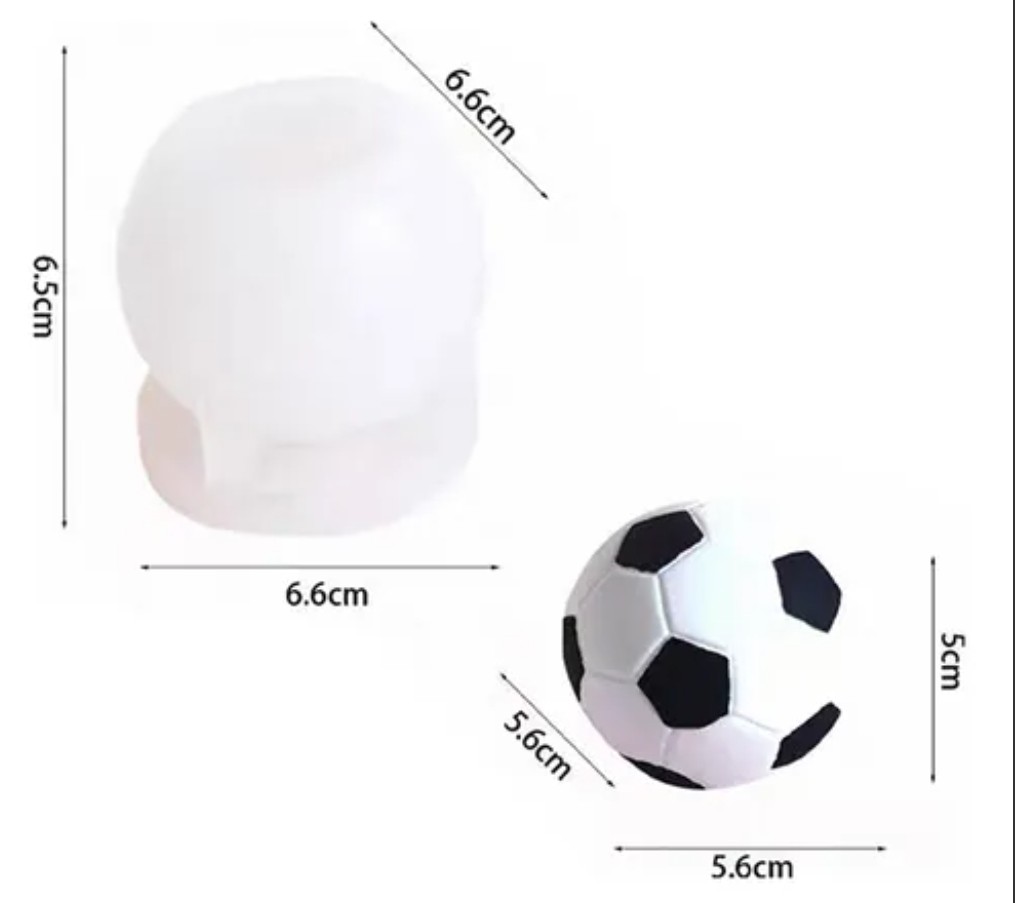 Molde de silicona en forma depelota de futbol, pensado para quienes crean objetos decorativos o utilitarios en cemento, yeso o resina. Su material flexible permite un desmolde perfecto sin necesidad de desmoldante, cuidando cada detalle de la pieza.
