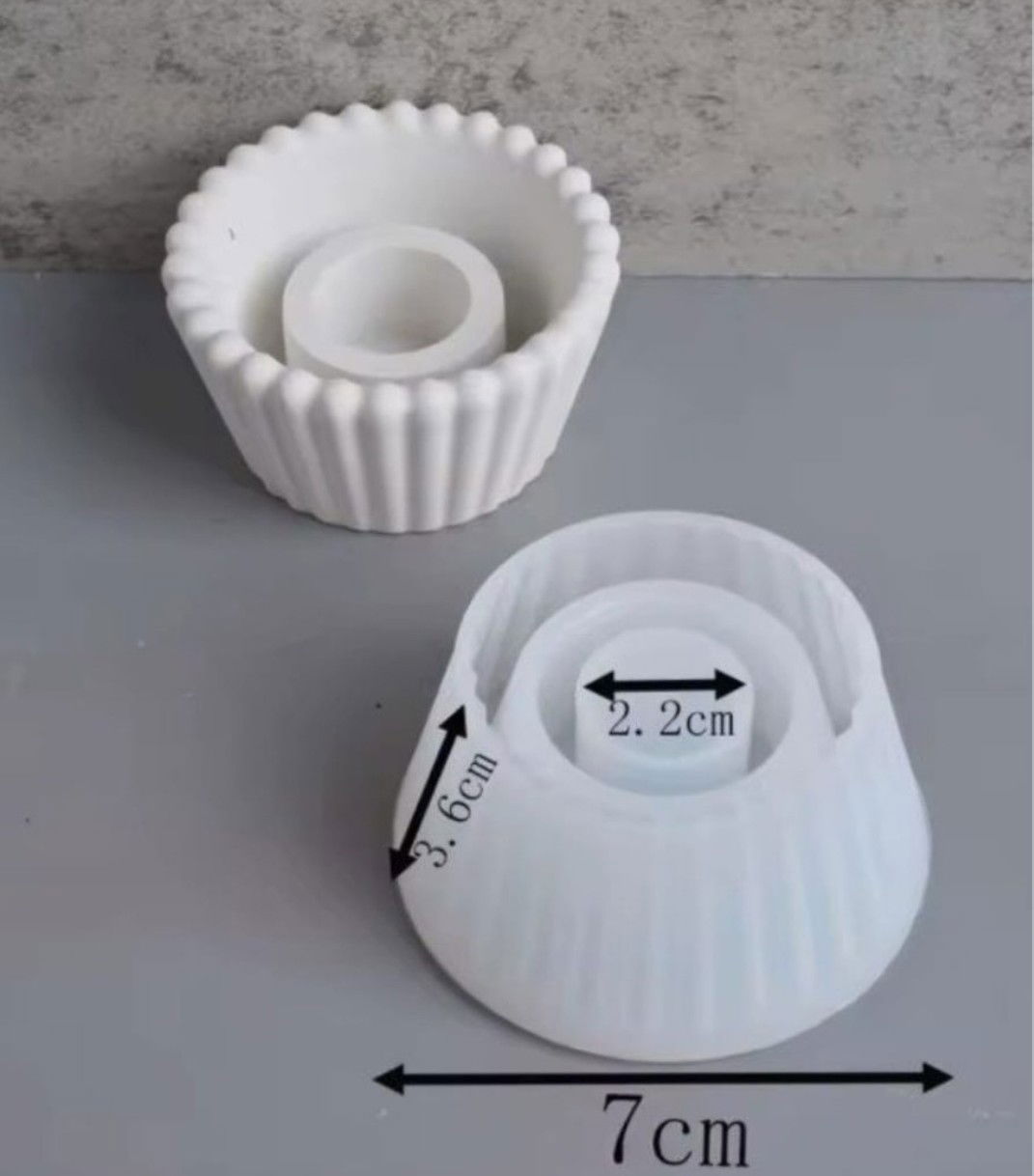 Molde de silicona en forma de porta vela redondo con rayas , pensado para quienes crean objetos decorativos o utilitarios en cemento, yeso o resina. Su material flexible permite un desmolde perfecto sin necesidad de desmoldante, cuidando cada detalle de la pieza.