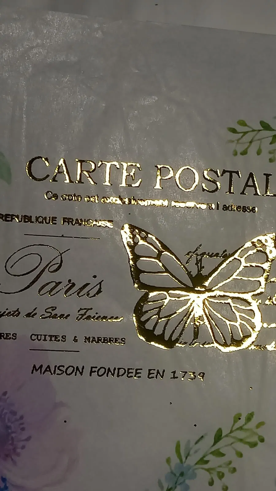 Lámina decorativa en papel tipo seda opaca, tamaño A4 (21 × 29,7 cm), con detalles metalizados en dorado. Diseñada especialmente para decoupage en piezas de cemento, madera, cartón o vidrio. Aporta un acabado sobrio con puntos de brillo delicado.