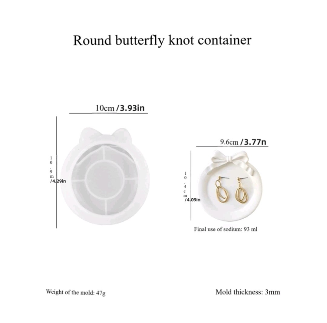 Molde de silicona flexible con forma de bandeja redonda con moño . Apto para cemento blanco o gris, yeso y resinas acrílicas, epoxi o poliéster. Su forma alargada es ideal para crear bandejas decorativas, bases para velas, organizadores o centros de mesa.