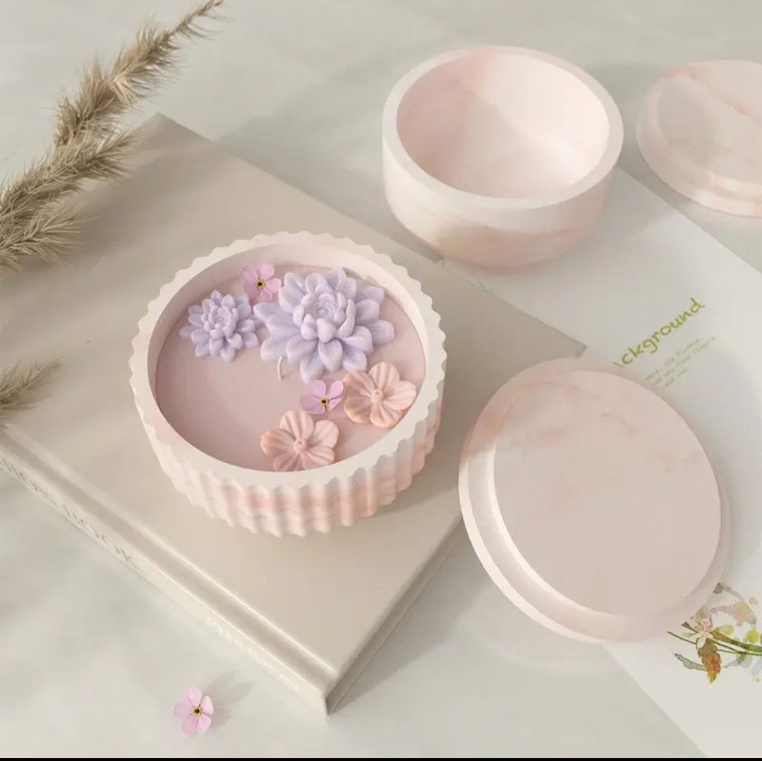 Molde de silicona en forma de porta vela o maceta y contenedor con tapa ideal para crear macetas originales contenedores de velas decorativas en cemento, yeso o resina acrílica. Su diseño aporta una estética delicada, perfecta para proyectos artesanales con identidad propia.