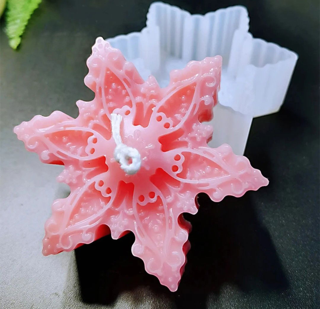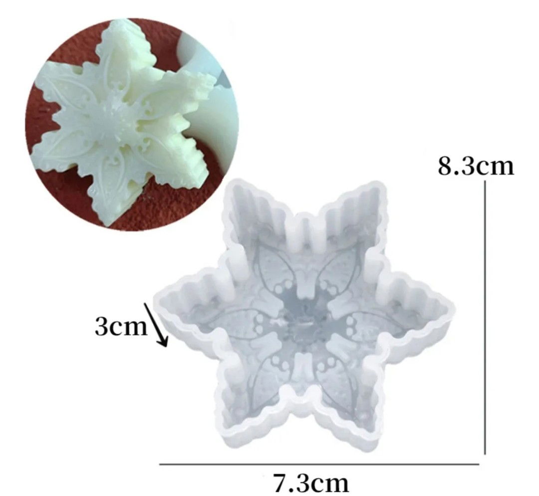 Molde de silicona en forma copo de nieve deal para crear velas decorativas o figuras en yeso o resina acrílica jabones. Su diseño aporta una estética delicada, perfecta para proyectos artesanales con identidad propia.