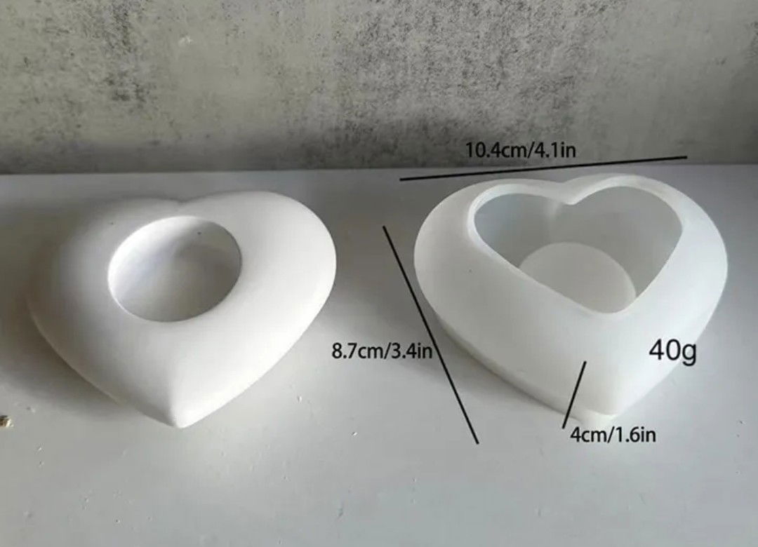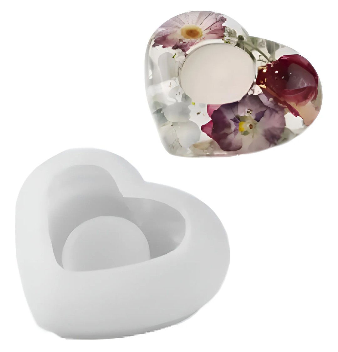 Molde de silicona en forma de corazón, pensado para quienes crean objetos decorativos o utilitarios en cemento, yeso o resina. Su material flexible permite un desmolde perfecto sin necesidad de desmoldante, cuidando cada detalle de la pieza.