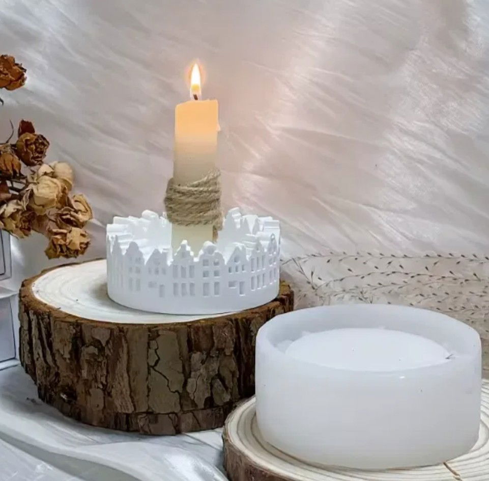Molde de silicona en forma de contenedor porta vela casitas deal para crear piezas originales y decorativas en cemento, yeso o resina acrílica. Su diseño aporta una estética delicada, perfecta para proyectos artesanales con identidad propia.