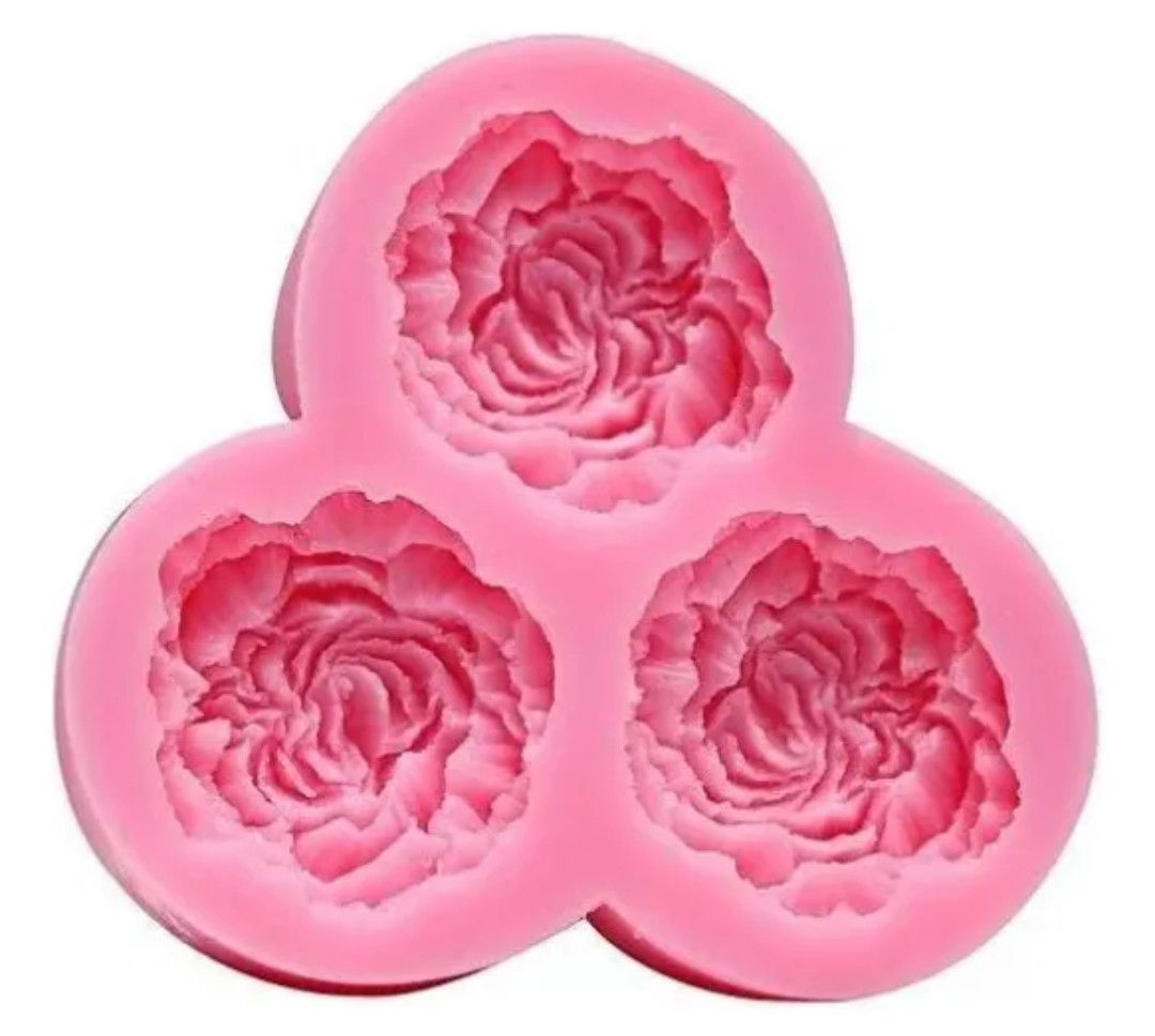 Molde de silicona en forma 3 mini peonias ideal para crear velas decorativas o figuras en yeso o resina acrílica. Su diseño aporta una estética delicada, perfecta para proyectos artesanales con identidad propia.