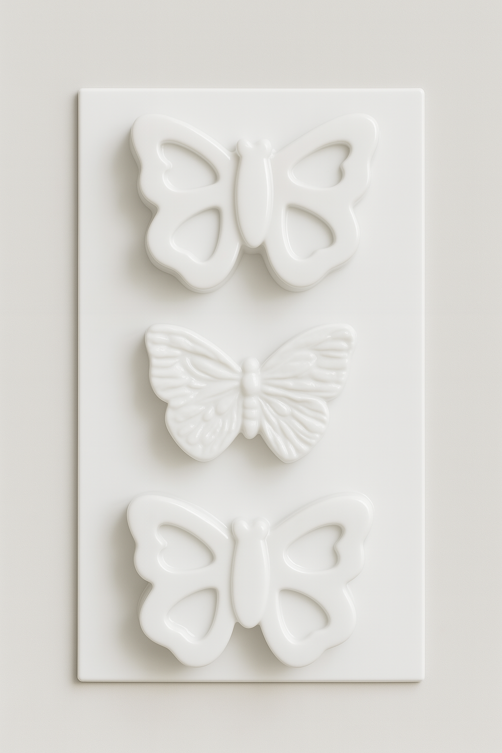 Molde termoformado formas mariposas 519, ideal para crear figuras delicadas en cemento, resina, yeso, jabones y chocolate. Cada cavidad reproduce una mariposa con interior pulido, lo que permite piezas limpias, definidas y sin imperfecciones. Fabricado en plástico termoformado liviano, reutilizable y fácil de limpiar