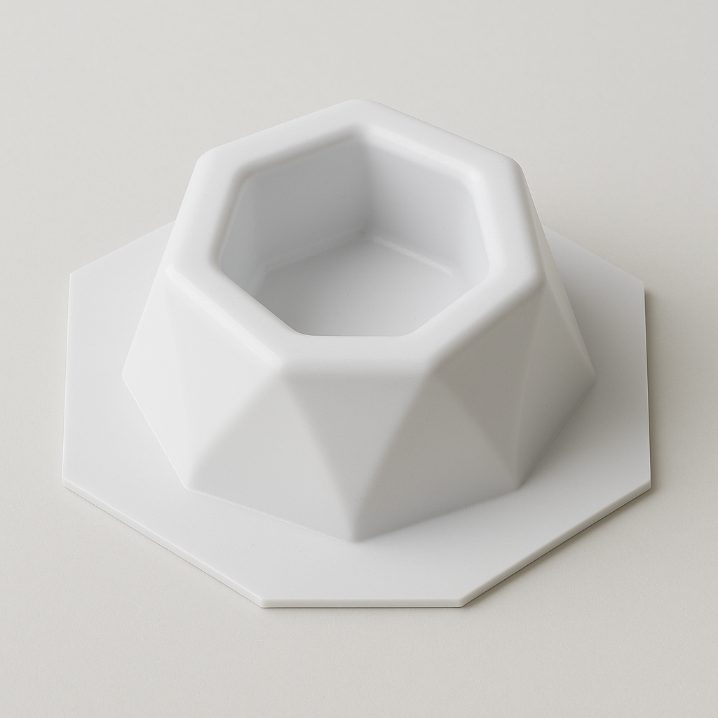 Molde termoformado modelo maceta facetada, fabricado en plástico PRO de alto impacto. Ideal para crear macetas decorativas con diseño geométrico moderno usando cemento blanco, resina acrílica, yeso o pasta piedra. Reutilizable, firme y de excelente definición. No se deforma con el uso. Aporta un toque contemporáneo a cualquier ambiente.