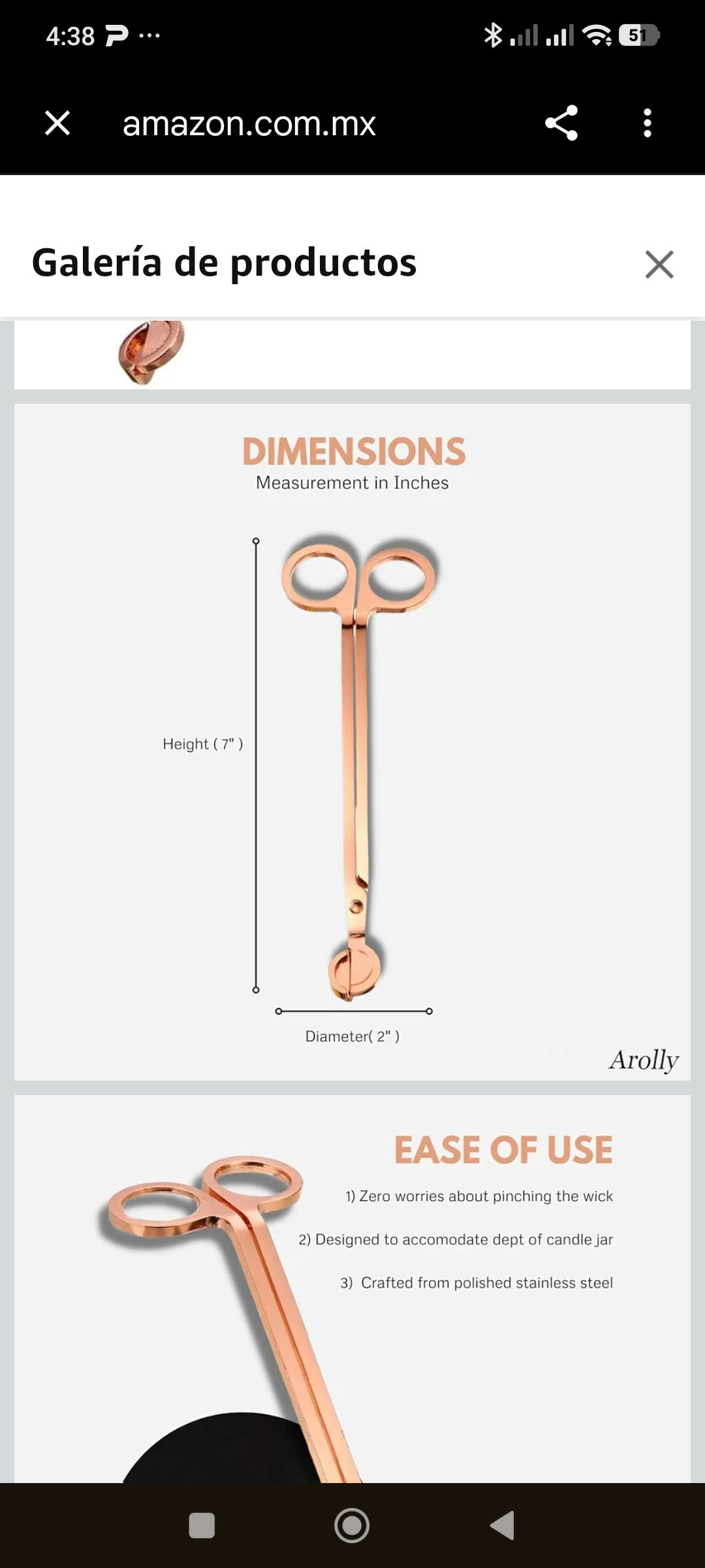 Tijera corta pabilo de metal. Color bronce