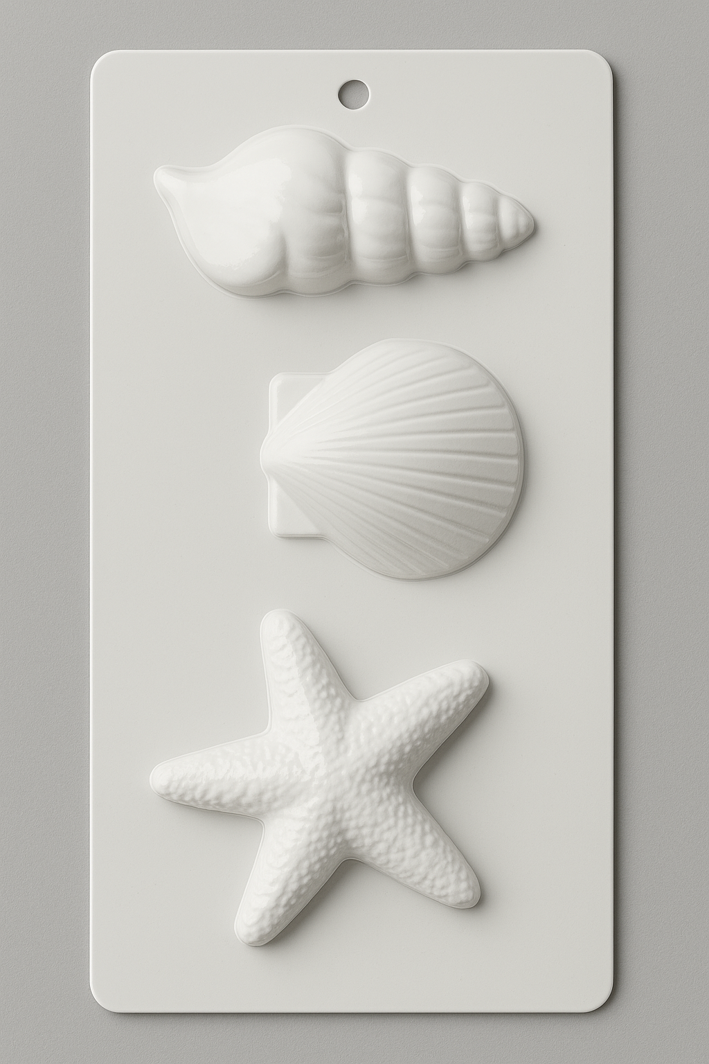 Molde termoformado de alta calidad con tres modelos inspirados en el mar: un caracol, una ostra y una estrella de mar. Perfecto para crear piezas decorativas o artesanales en cemento, yeso, resina acrílica, jabón, velas y aromatizantes. Reutilizable, fácil de limpiar y desmoldar. Se recomienda el uso de desmoldante en cada colada para prolongar la vida útil del molde y facilitar la extracción de las piezas.