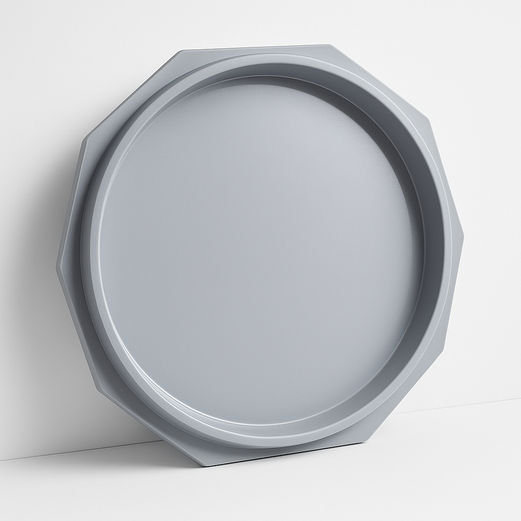 Molde círculo  grande, fabricado en plástico de alto impacto. Versión PRO, súper resistente y reutilizable, ideal para quienes buscan durabilidad y definición. Apto para cemento blanco, resina acrílica, pasta piedra o yeso. No se deforma, soporta múltiples usos y permite obtener piezas prolijas y firmes. Perfecto para crear bandejas decorativas, organizadores o piezas artesanales únicas.