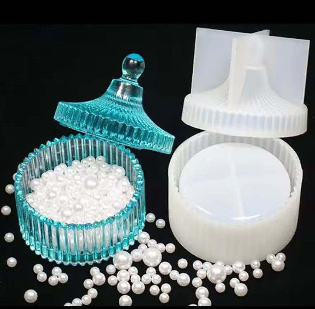 Molde de silicona en forma de contenedor caramelera circus con tapa ideal para crear macetas originales y decorativas en cemento, yeso o resina acrílica. Su diseño aporta una estética delicada, perfecta para proyectos artesanales con identidad propia.