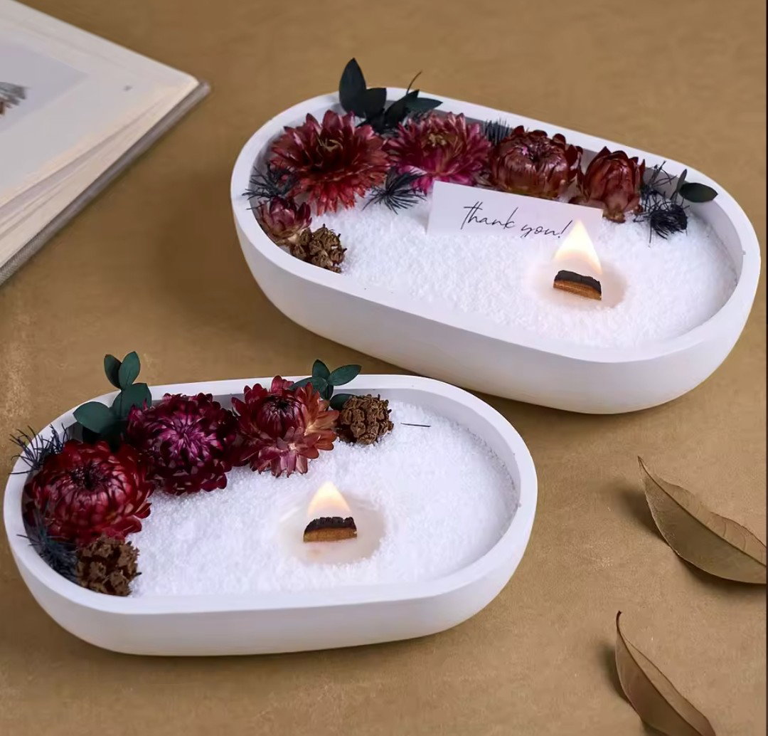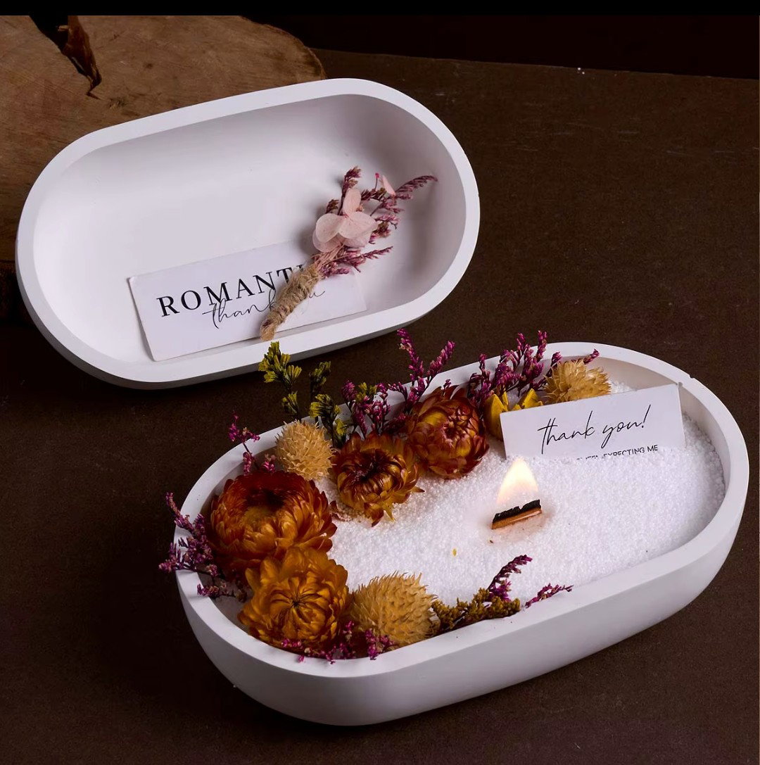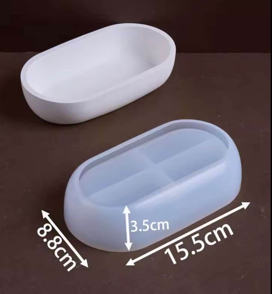Molde de silicona flexible. Apto para cemento blanco o gris, yeso y resinas acrílicas, epoxi o poliéster. Su forma alargada es ideal para crear bandejas decorativas, bases para velas, organizadores o centros de mesa.