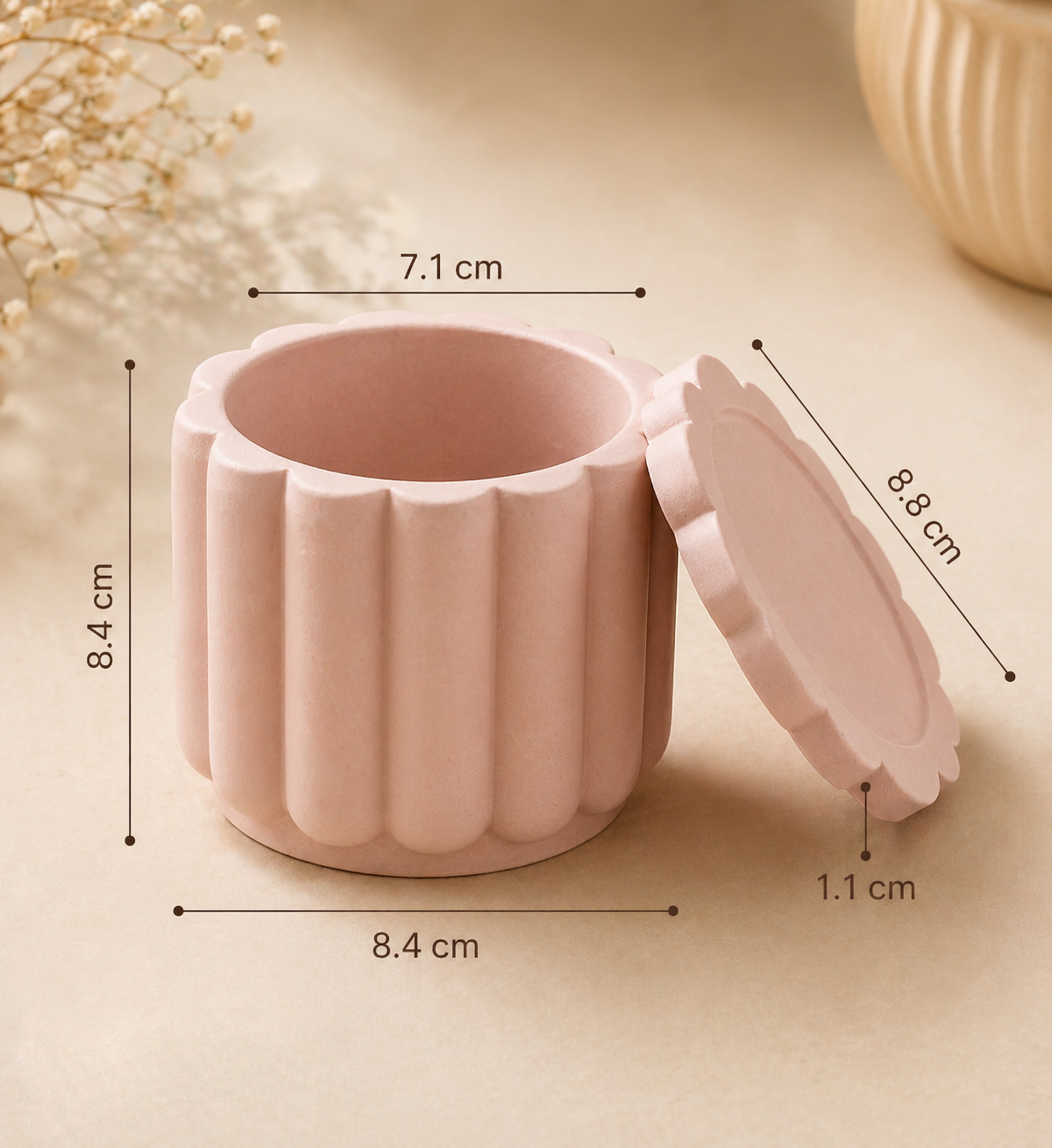 Molde de silicona en forma de contenedor con tapa ideal para crear macetas originales y decorativas en cemento, yeso o resina acrílica. Su diseño aporta una estética delicada, perfecta para proyectos artesanales con identidad propia.