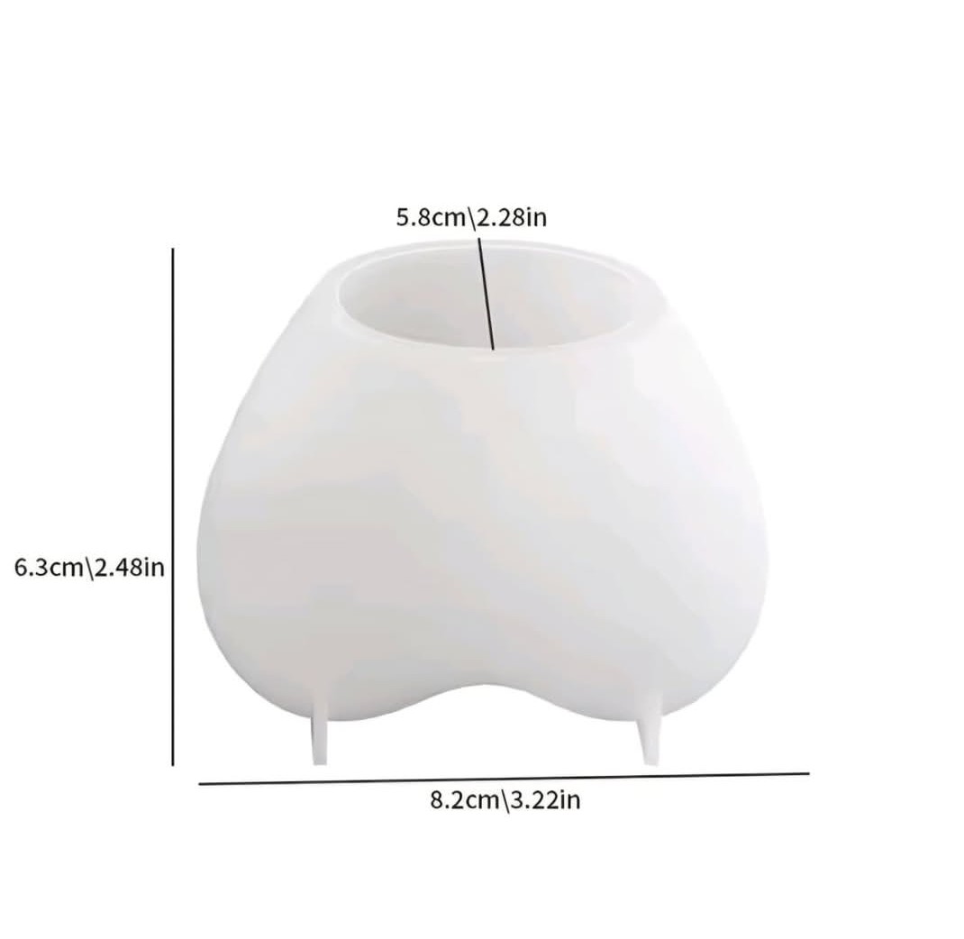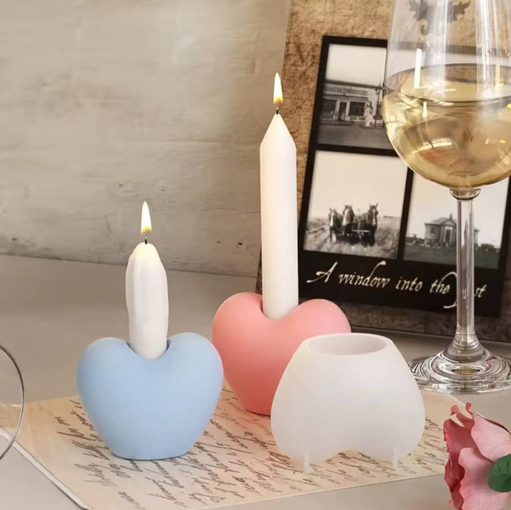 Molde de silicona en forma de porta vela corazon , pensado para quienes crean objetos decorativos o utilitarios en cemento, yeso o resina. Su material flexible permite un desmolde perfecto sin necesidad de desmoldante, cuidando cada detalle de la pieza.