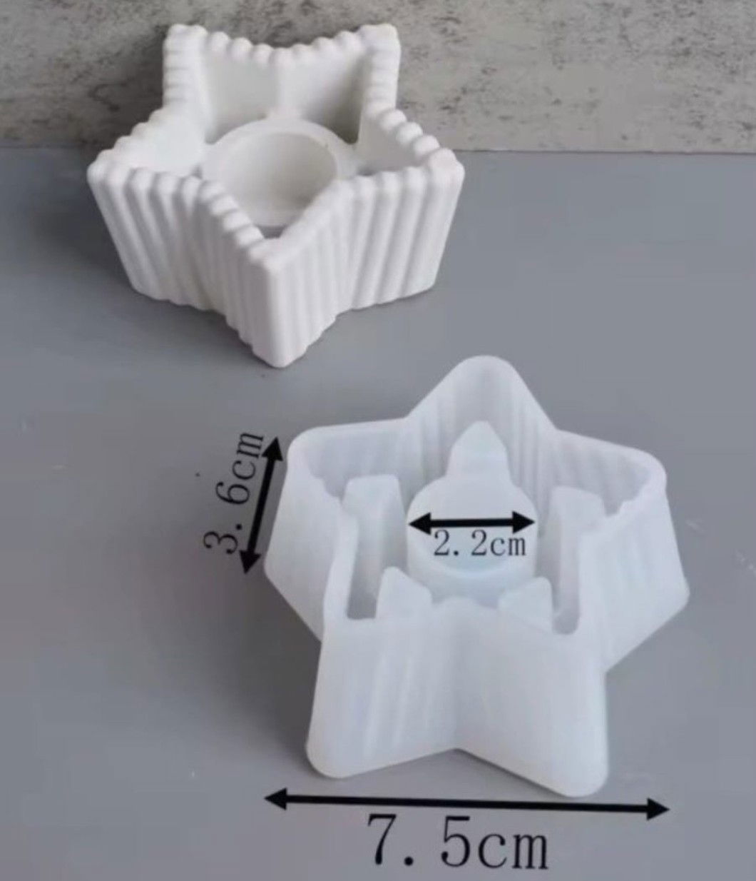 Molde de silicona en forma de porta vela estrella con rayas , pensado para quienes crean objetos decorativos o utilitarios en cemento, yeso o resina. Su material flexible permite un desmolde perfecto sin necesidad de desmoldante, cuidando cada detalle de la pieza.
