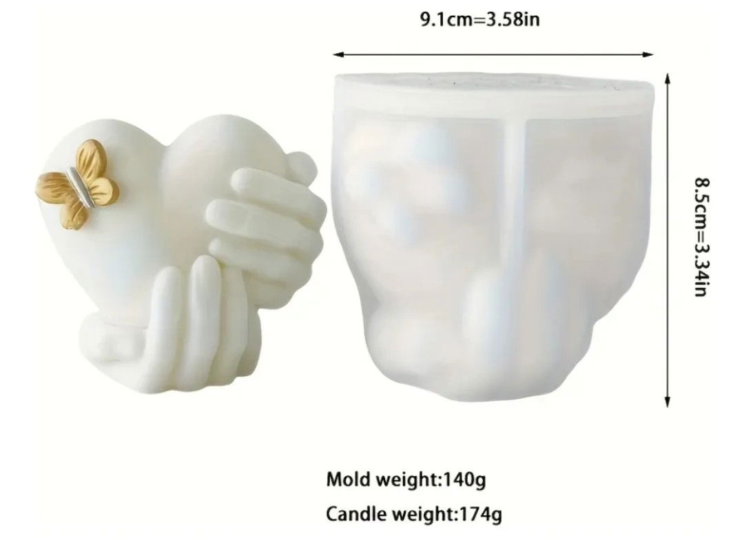 Molde de silicona vela manos corazón 5g7 Velas, Cemento, Resina y Yeso
