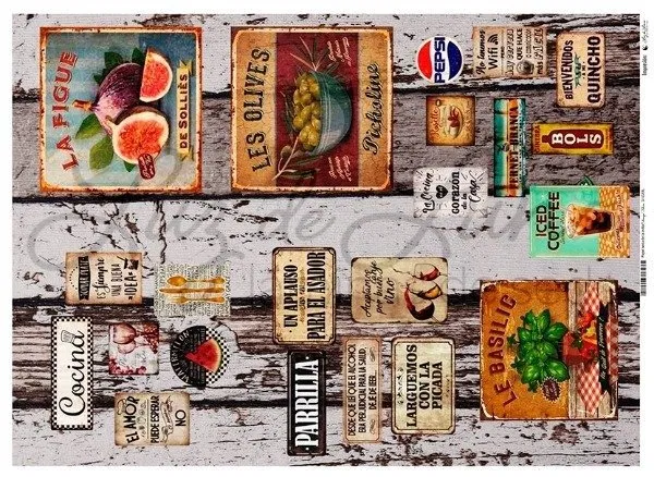 Lámina decorativa en papel tipo seda ultrafino, tamaño 50×70 cm, de la reconocida marca Estampa Felicce, diseño SK-15. Es ideal para decoupage en superficies grandes como bandejas de cemento, macetas amplias, tapas de cajas o muebles.
