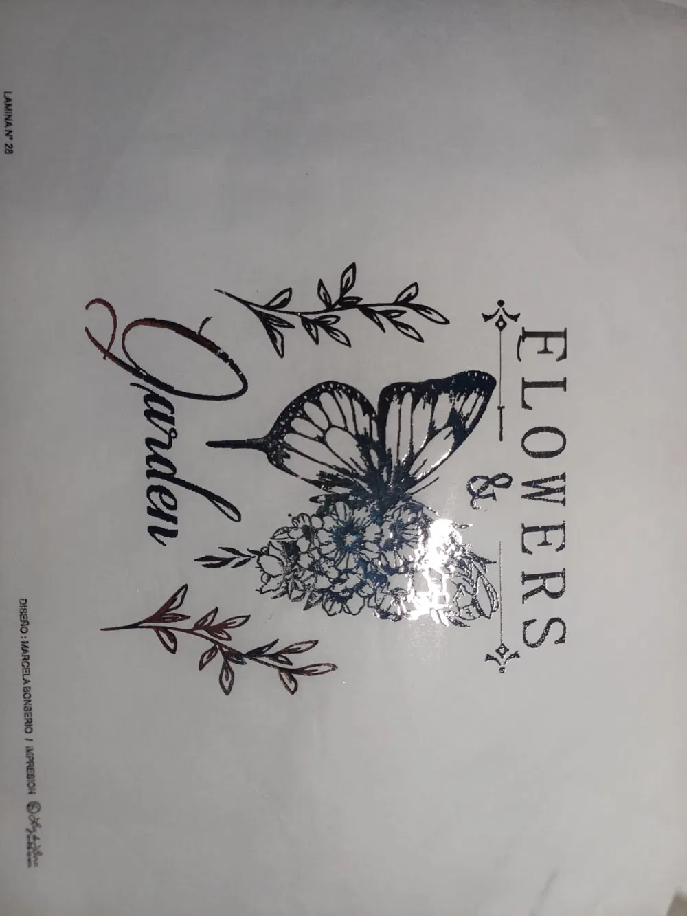 Lámina decorativa tamaño A5 (21 × 14,8 cm) en color plateado metálico. Hecha en papel tipo seda, es ideal para decoupage sobre cemento, madera, cartón o vidrio, aportando un acabado llamativo y artesanal.