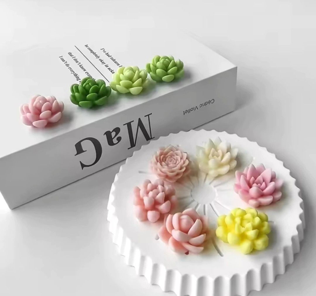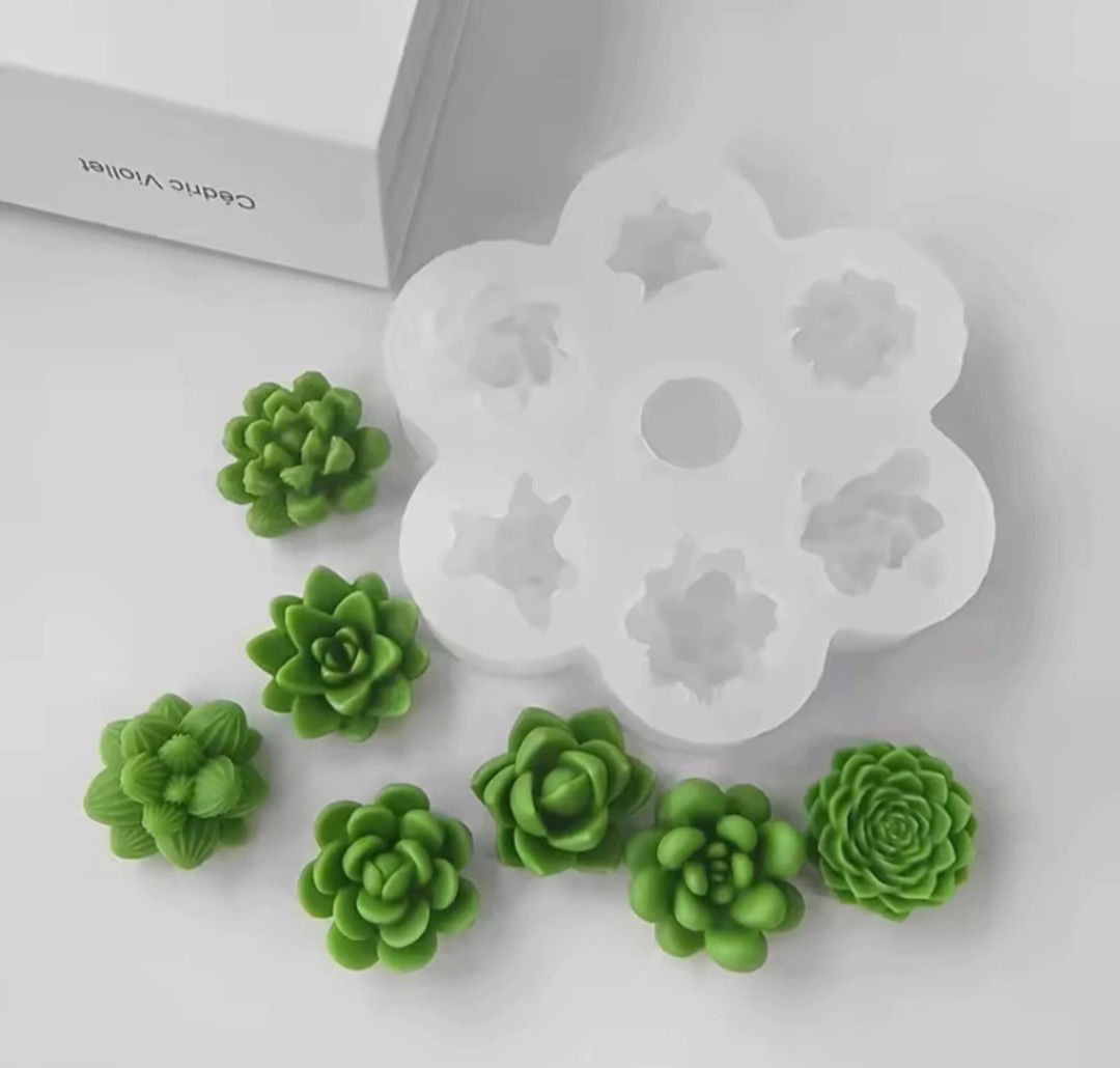 Molde de silicona en forma suculentas por 7 ideal para crear velas decorativas o figuras en yeso o resina acrílica jabones. Su diseño aporta una estética delicada, perfecta para proyectos artesanales con identidad propia.