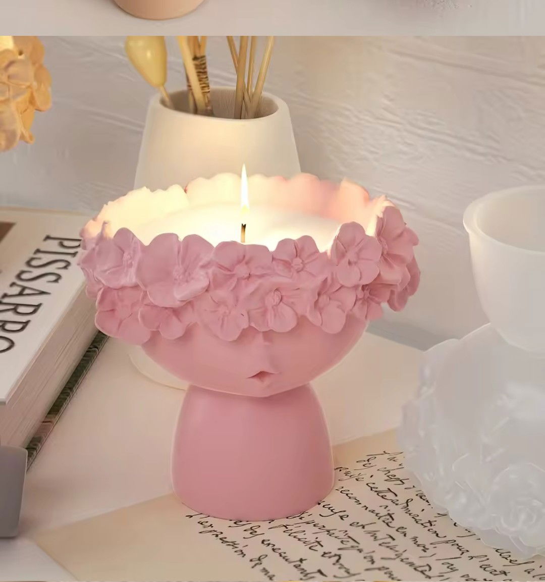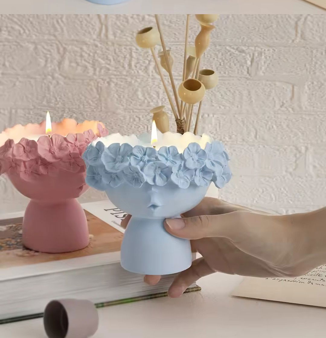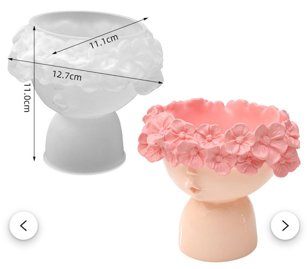 Molde de silicona en forma de contenedor mujer con corona de flores ideal para crear macetas originales y decorativas en cemento, yeso o resina acrílica. Su diseño aporta una estética delicada, perfecta para proyectos artesanales con identidad propia.