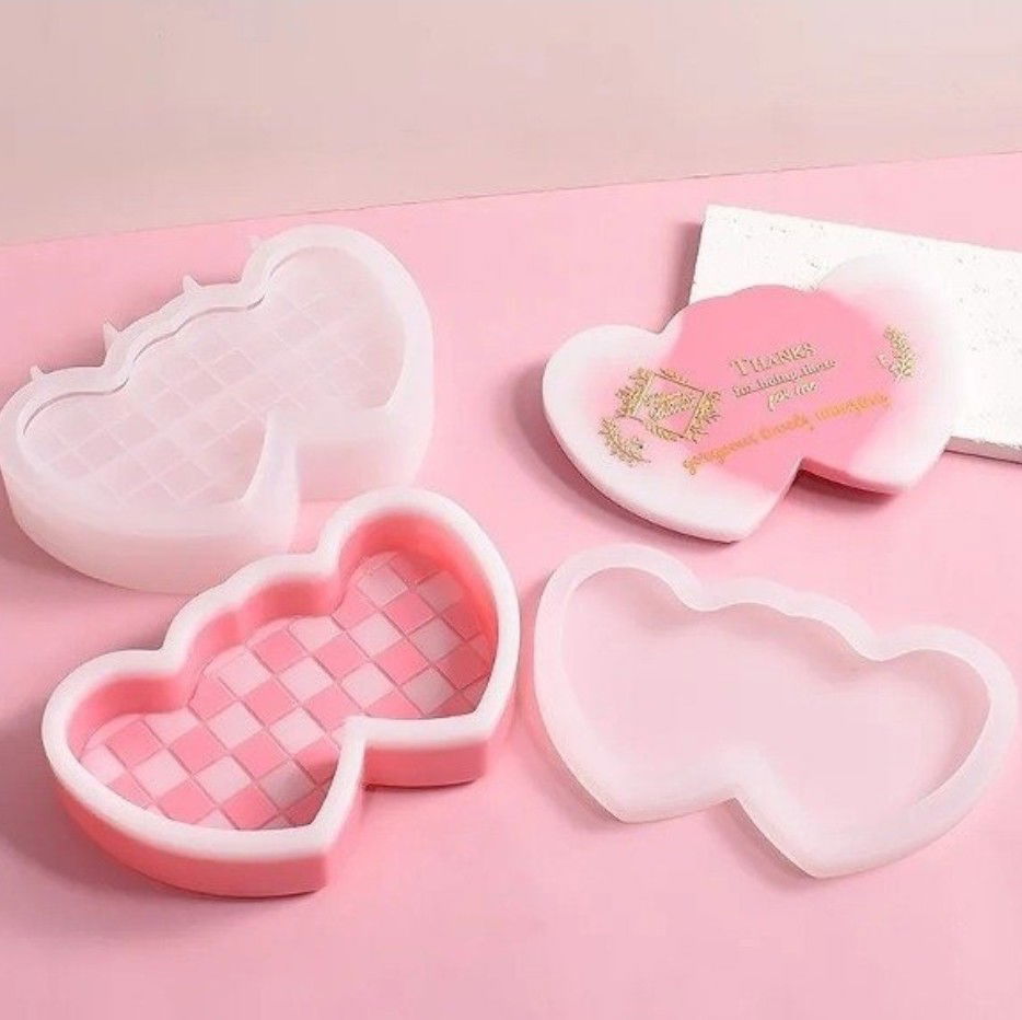 Molde de silicona en forma de contenedor corazón doble con tapa Su diseño aporta una estética delicada, perfecta para proyectos artesanales con identidad propia.