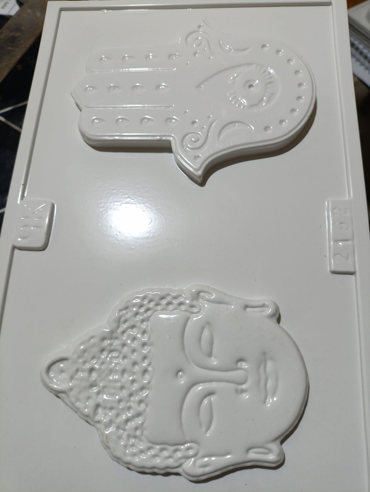El molde termoformado liviano número 1639 manito y buda es ideal para crear figuras decorativas, en cemento, yeso o resina acrílica.