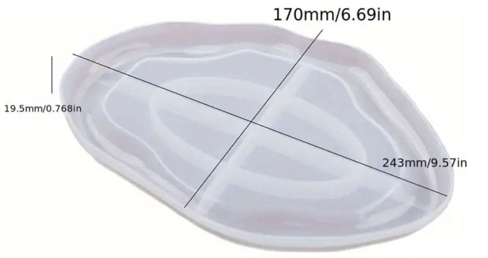 Molde de silicona flexible con forma de bandeja ovalada en tamaño grande. Apto para cemento blanco o gris, yeso y resinas acrĂlicas, epoxi o poliĂ©ster. Su forma alargada es ideal para crear bandejas decorativas, bases para velas, organizadores o centros de mesa.