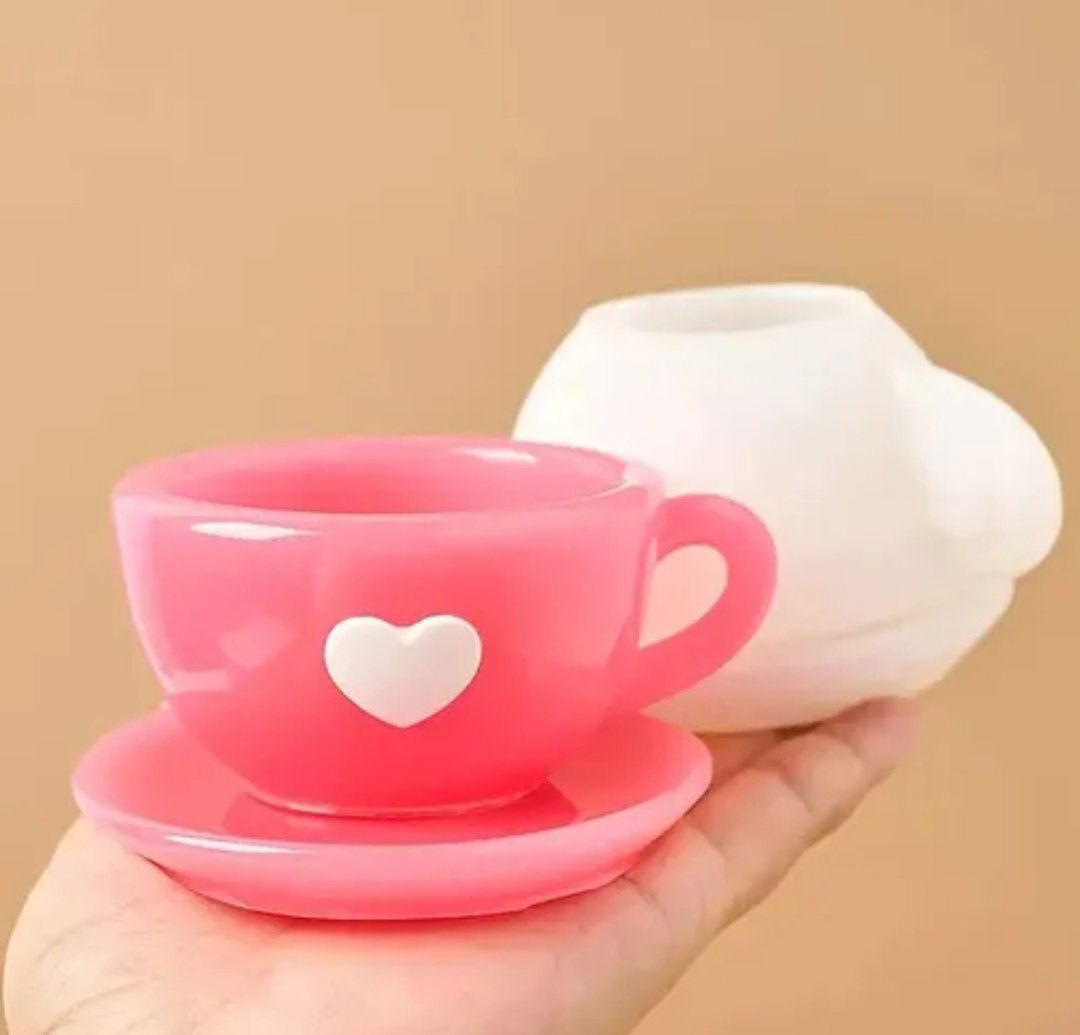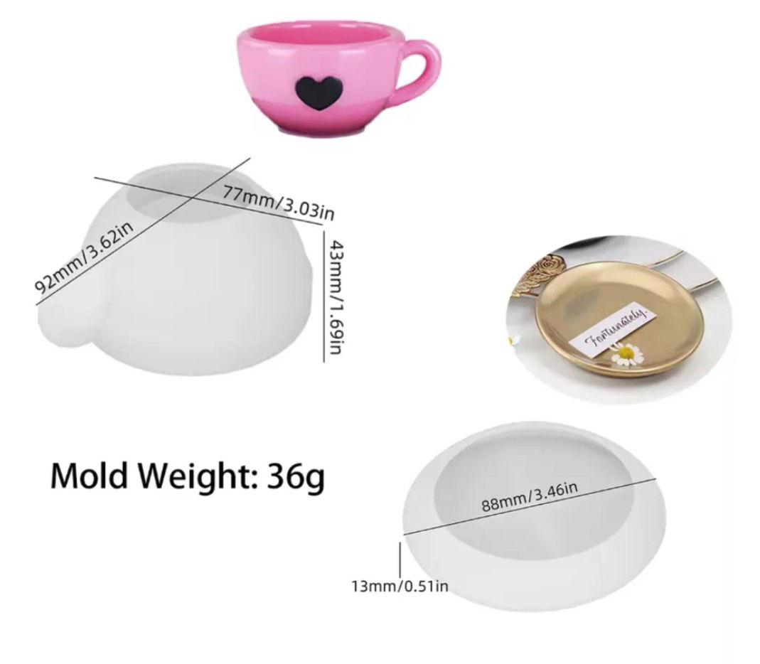 Molde de silicona contenedor taza con plato– Velas, Cemento, Resina y Yeso